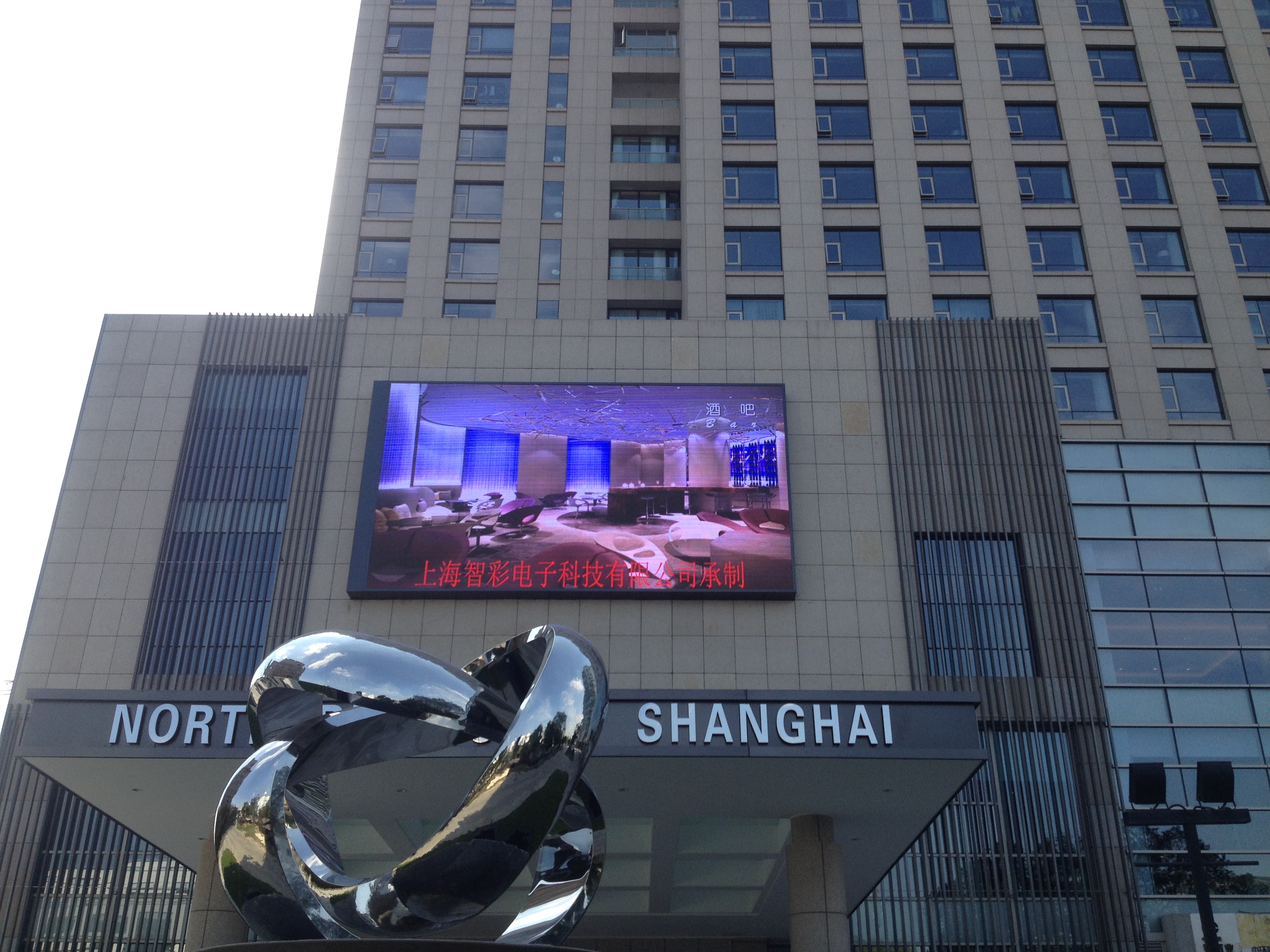 上海北上海國際大酒店P(guān)8戶外全彩LED顯示屏由智彩科技定制、安裝